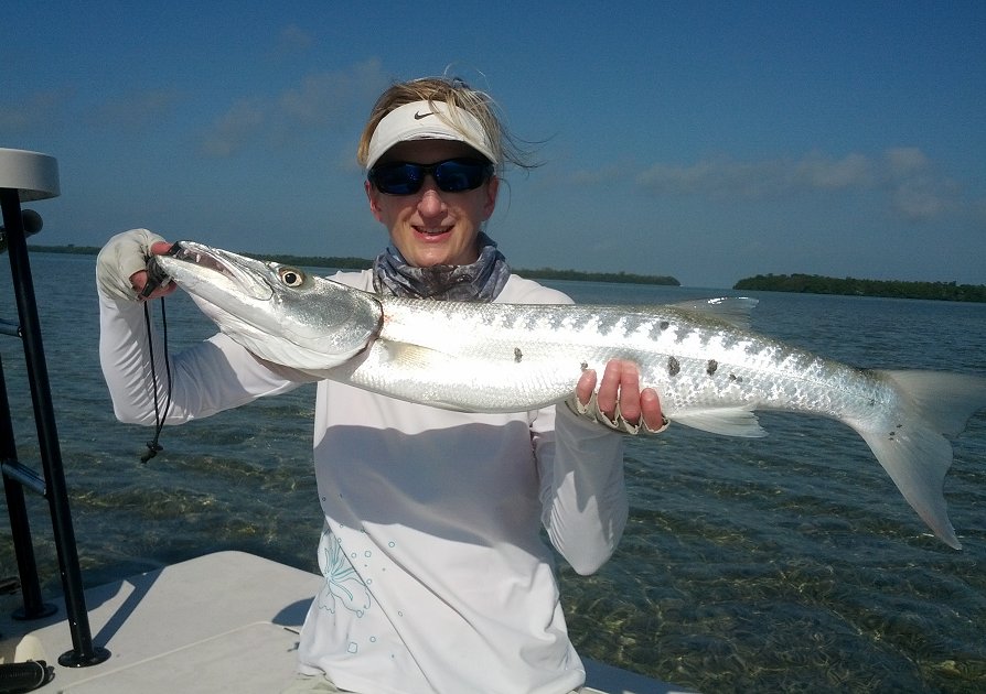 Key West Fly and Spin Fishing Charters Fishing Report March 2013: Fishing during the month of March has been on and off, especially for the big three species. This is due to the cold fronts that have been making their way through the Lower Keys and Key West. The best thing about fishing here is that their is always something to catch all year round. On the warmer days we have had Permit show up boat side on the flats. We tagged one for project permit. The Tarpon are around the Key West area rolling spiratically as weather cooperates. We have also found some schools of Redfish in the back country in shallow water that were caught on fly. Keeping the action going, we've caught Jacks, Barracudas, Lemon sharks, and Mangrove Snappers on the cooler windy days. There's nothing like seeing a Barracuda attack your fly or plug at lightning speed and then peel off drag! The Jacks are a blast too, as a whole school will try to eat your fly or plug all at once (known as a "Jack Attack"), and believe it or not we have even ended up with two on the hook at once. As for Sharks, well nothing beats watching a 4'-6' Shark swim up and eat a fly, plug, or live bait followed by a rod bending arm burning battle. Thats the report for now and hope to have a report for the rest of the month to include lots of TARPON which will be the focus as we head into the months of April, May, and June. I have some open dates for the 2013 Tarpon Season so give us a call to get in on the action! ------<*)}}}}}}}}><