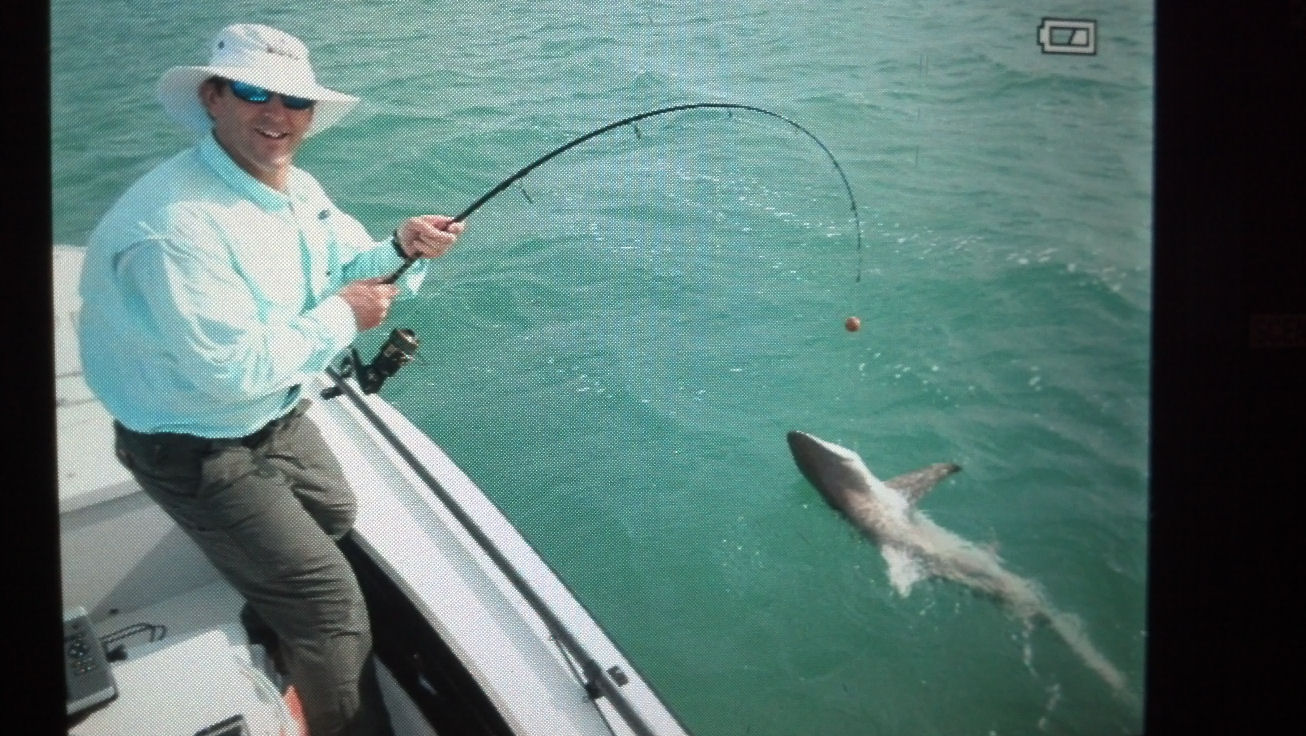 sharks crashing a top water bait or surface fly is a fun way to bend the rod